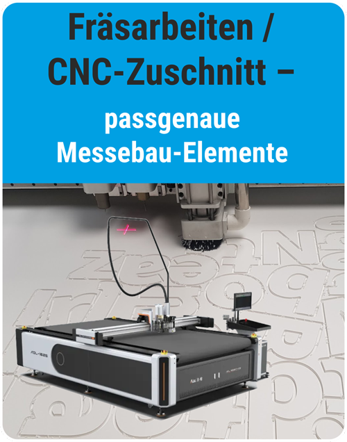 Druck & Fräsung aus einer Hand – schneller Aufbau, weniger Nacharbeit, perfekte Passform am Messestand.